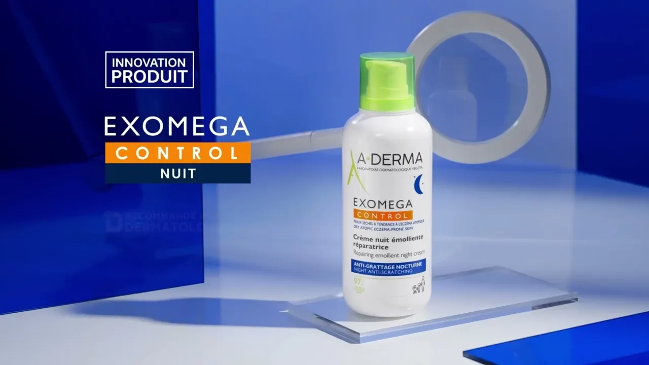 Découvrez l’innovation EXOMEGA CONTROL NUIT, la 1ère crème nuit émolliente A-DERMA pour les peaux sèches sujettes à l'eczéma atopique qui cible les molécules responsables du grattage nocturne pour un sommeil 2X plus réparateur *